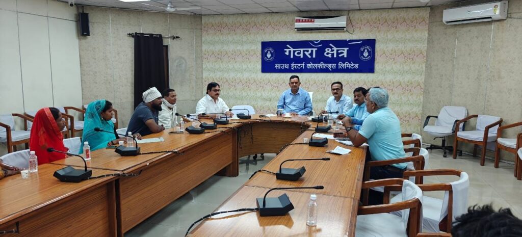 उपाध्यक्ष गायत्री गोवर्धन सिंह कंवर नगर पालिका परिषद बांकी मोंगरा वार्ड क्रमांक 18 ग्राम मड़वाढोढा़ वाशियो के साथ एसईसीएल गेवरा जीएम ऑफिस में आज दिनांक 17/8/25 त्रिपक्षी वार्ता संपन्न हुआ वार्ता में एसईसीएल गेवरा के जी एम, एरिया पर्सनल मैनेजर, सिविल विभाग के अधिकारी रिन्यू डिपार्टमेंट के अधिकारी ग्राम वासी आनंद भवन सिंह कंवर विशाल सिंह कंवर, प्रदीप, अशोक यादव, आशीष कुमार चौहान,मुन्ना चौहान, विनोद चौहान, विष्णु अगरिया, तखत राम, ओम नारायण, दिलीप अभिषेक, सतानंद, विकेश, विमलेश, रामशंकर, विष्णु कुमार, अजय कुमार, मेहता, तरण, चंद्र भवन, प्रकाश, प्रवीण कुमार, समीर, अरविंद, सेवाराम, गणेश पाल, राम सिंह, बालक राम, फेकू राम, विनोद, गणेश, ईश्वर, इन सभी ग्राम वासियों के उपस्थिति में निम्न मांगों