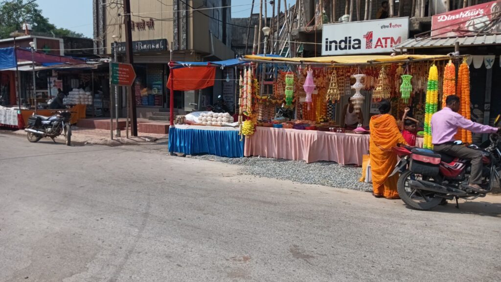 रोड पर पूरी दुकान लगी हुई है l आखिर जिम्मेदारी किसकी है l क्या नगर पालिका परिषद के जवाब दार अधिकारी आंख बंद कर इस मार्ग से  आना जाना करते है मगर यह नहीं नजर आता है l आज से धनतेरस की शुरुवात हो चुकी है आम जनता अपनी वाहन कहाँ पर खड़ा करेंगे l