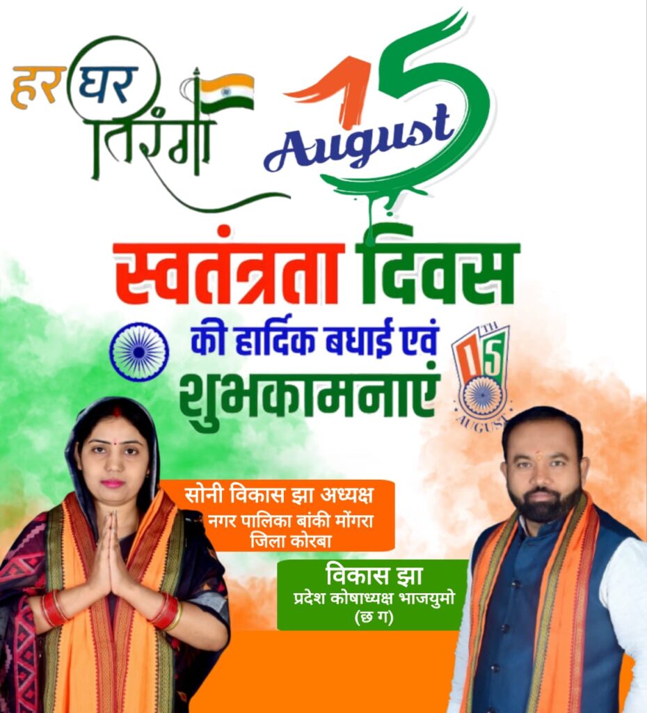 स्वतंत्रता दिवस की हार्दिक शुभकामनाएँ! आज हम आजादी के इस पावन पर्व पर एकत्र हुए हैं, जहाँ हमारा हृदय गर्व और जोश से भरा है। आपने मुझे अपने विश्वास से नवाजा और इस नगर की जिम्मेदारी सौंपी। मैं वचन देता हूँ कि हमारा नगर स्वच्छ, सुरक्षित और हर सुविधा से युक्त होगा। आइए, हम सब मिलकर अपने नगर को एकता और समर्पण से नई ऊँचाइयों तक ले जाएँ। यह आजादी हमें प्रेरित करती है कि हम अपने कर्तव्यों को पूरे मन से निभाएँ। जय हिंद, जय भारत!