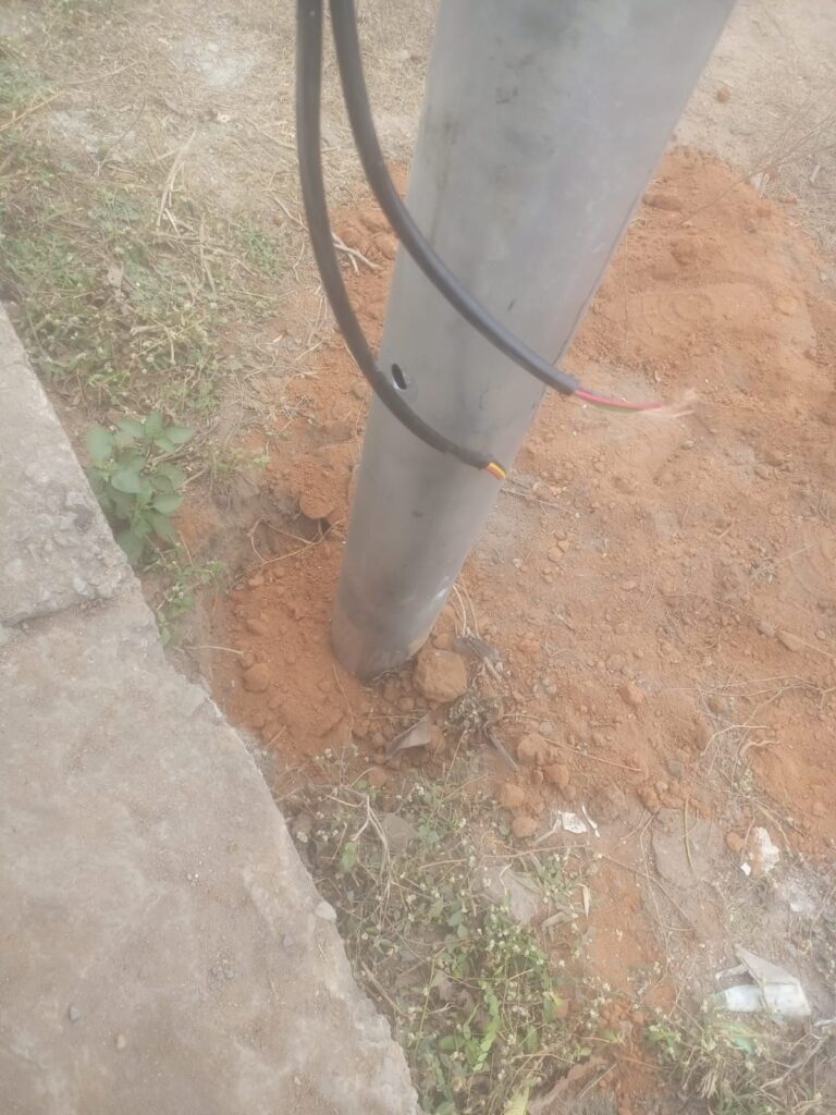 01. कमजोर नींव (No PCC):- नियमों के विरुद्ध खंभों के आधार में कंक्रीट (PCC) नहीं डाला जा रहा है जिससे तेज हवा या बारिश में पोल गिरकर जान-माल की हानि कर सकते हैं ।