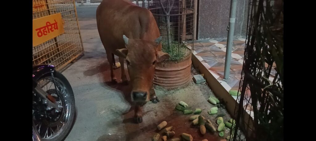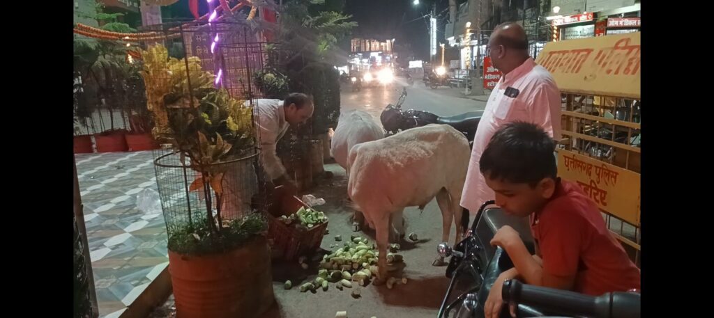 समिति द्वारा आयोजित इस कार्यक्रम के तहत लगभग 400 किलों ककड़ी,खीरा, अन्य सब्जी को मवेशीयो को भोजन कराए l